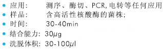 在某些大腸桿菌菌株內(nèi)常常含有高活性的核酸酶,甚至多次接種的DH5α菌株(EndoA-)也會(huì)因發(fā)生突變而導(dǎo)致菌株的核酸酶復(fù)活。在常規(guī)的堿裂解法中,由于核酸酶不易失活而導(dǎo)致提取的質(zhì)粒DNA發(fā)生降解,即使是純化的質(zhì)粒冷藏于-20°C,降解也常有發(fā)生。該系列試劑盒采用高活性的蛋白酶消化方法,能徹底去除菌株自身的核酸酶,從而保證純化的質(zhì)粒不會(huì)發(fā)生降解。因此,該系統(tǒng)適合于需要將純化的質(zhì)粒長(zhǎng)期冷藏和頻繁解凍使用的用戶,適合于從含高活性核酸酶的菌株中純化質(zhì)粒DNA,適合于從動(dòng)物身上剛分離出來的菌株中提取質(zhì)粒。