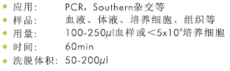 從100-250ul血樣、唾液、拭子、組織、干血斑或<5x106個(gè)培養(yǎng)細(xì)胞中提取基因組DNA