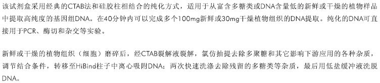 從100mg新鮮/30mg干燥植物組織提取高純度基因組DNA