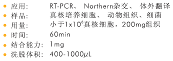 從1×108個(gè)細(xì)胞/200mg組織中提取高達(dá)1mg總RNA