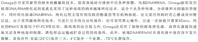 用磁珠純化方式從各種體液及無(wú)細(xì)胞培養(yǎng)液中純化病毒DNA和病毒RNA