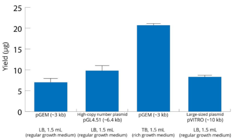 高產(chǎn)量–可從≤1.5mL TB培養(yǎng)基中獲得高達20μg的質(zhì)粒DNA