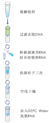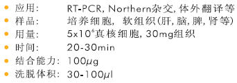 從<5×106真核培養(yǎng)細(xì)胞或<30mg軟組織中提取高達(dá)100ug總RNA